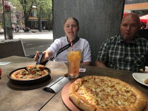 For at afrunde dagen, spiste vi på Pizza Hut, gik tilbage til autocamperen og kørte forbi et kræmmermarked. Til slut, kørte vi på motorvejen og overnattede på en rasteplads.