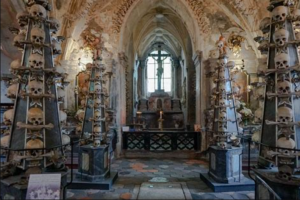 På vejen så vi en skelet-kirke, som er en kirke, hvor der blev udstillet 60.000 skeletter, som var blevet gravet op og placeret i tårne.